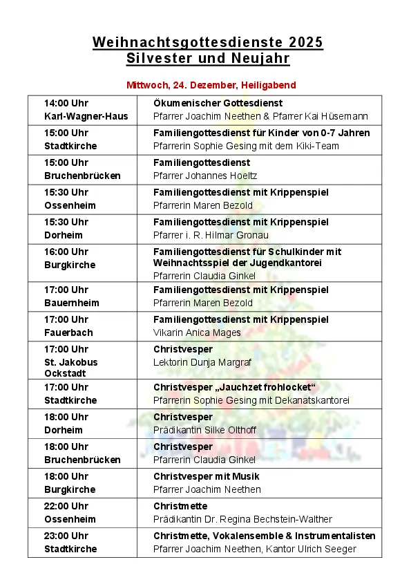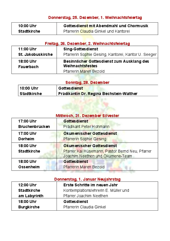 Kontakt bei Rückfragen: Pfarrerin Claudia Ginkel, Tel: 0 60 31-166 403 oder Pfarrerin i.R. Gisela Theis, Tel: 0 60 31-6 21 57