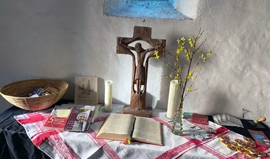 Die Stempelstation in der Sakristei unserer Kirche ist für Pilger von 08:00 bis 18:00 Uhr geöffnet. Dort können sich die Gäste ins Gästebuch eintragen, in der schönen Bibel lesen und den Pilgerstempel für ihren Pilgerausweis benutzen.
